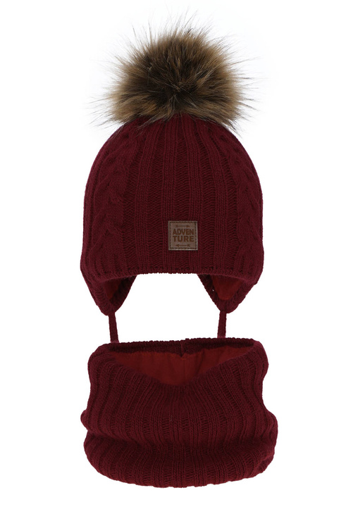 Ensemble d'hiver garçon: bonnet et snood, bordéau, avec pompon, avec liens, Casper